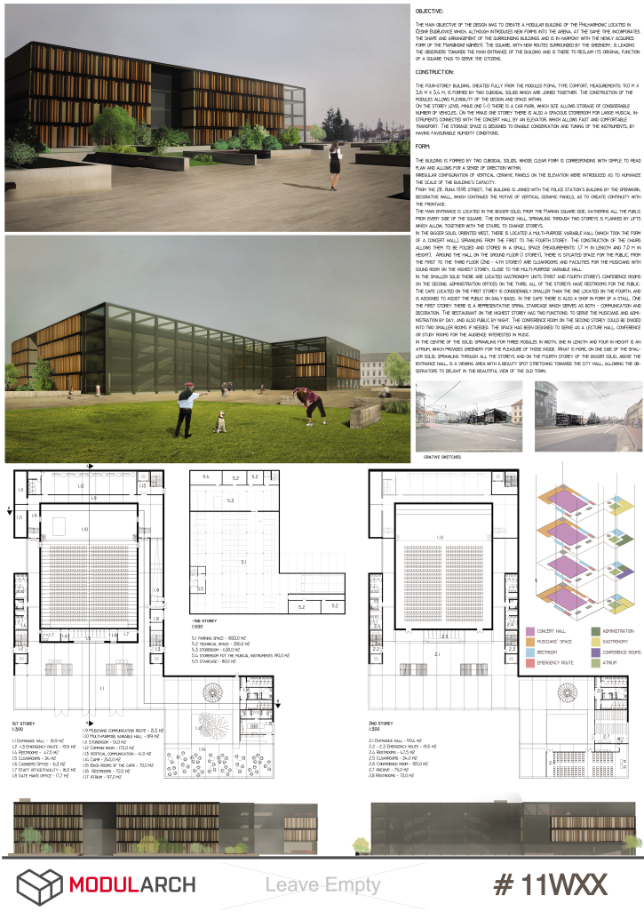 Zvláštní ocenění | 8. ročník (2016) Multi-purpose Building of the South Czech Philharmonic Anna Moskva, Michał Motyl, Kamila Kowal Honorable mention for esthetical modularity Zpět ↑